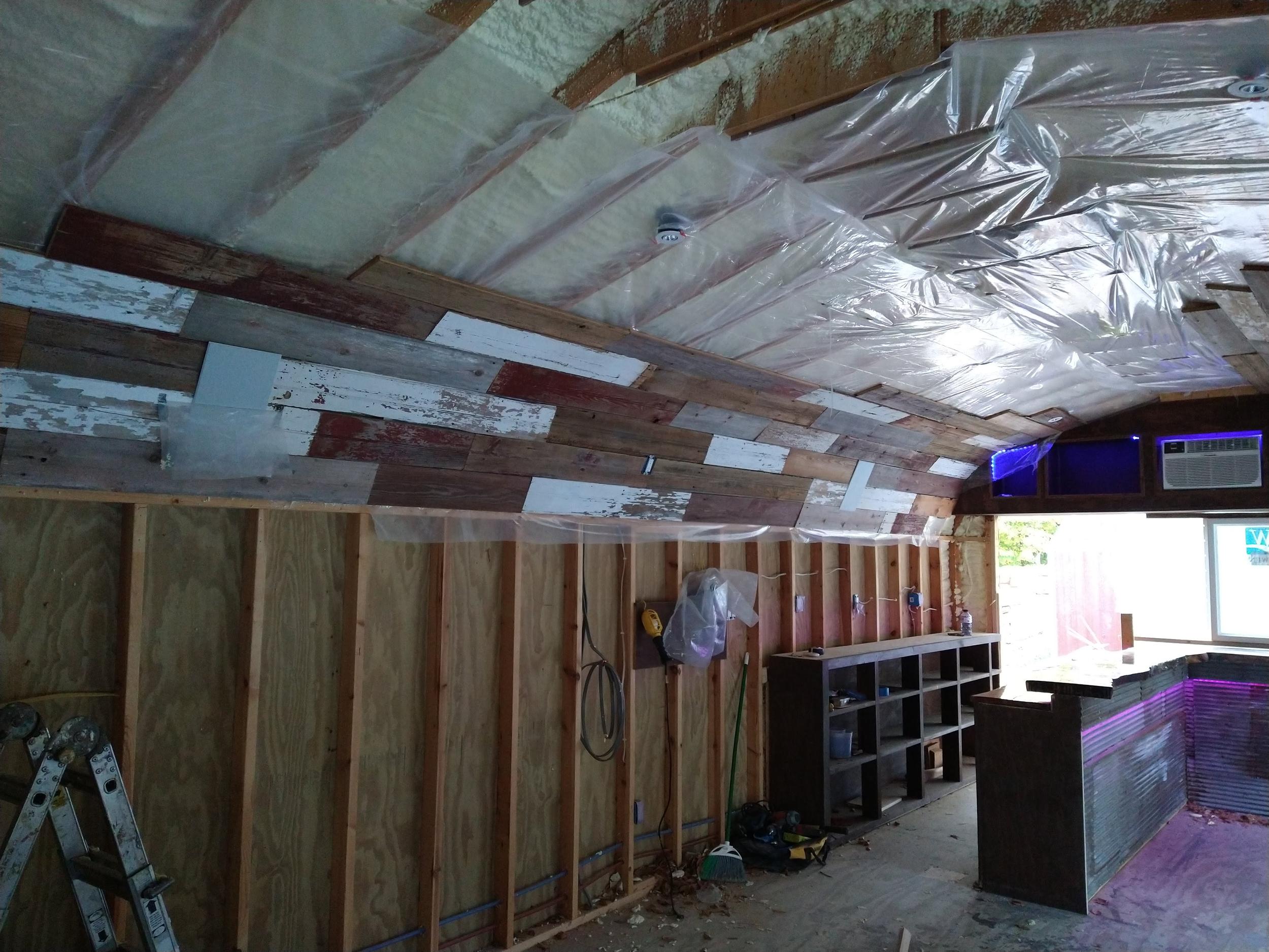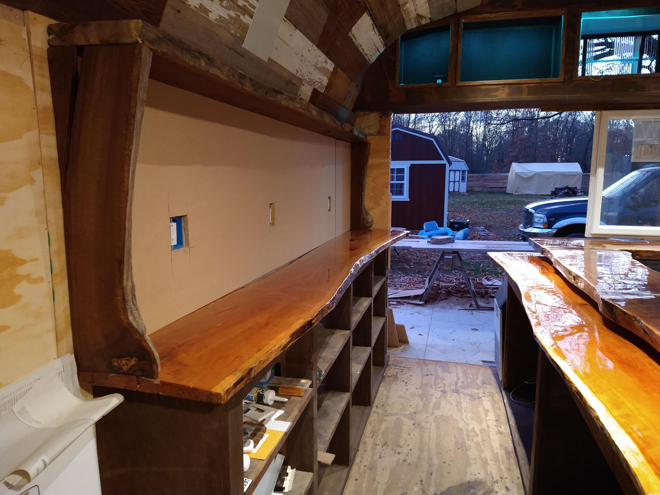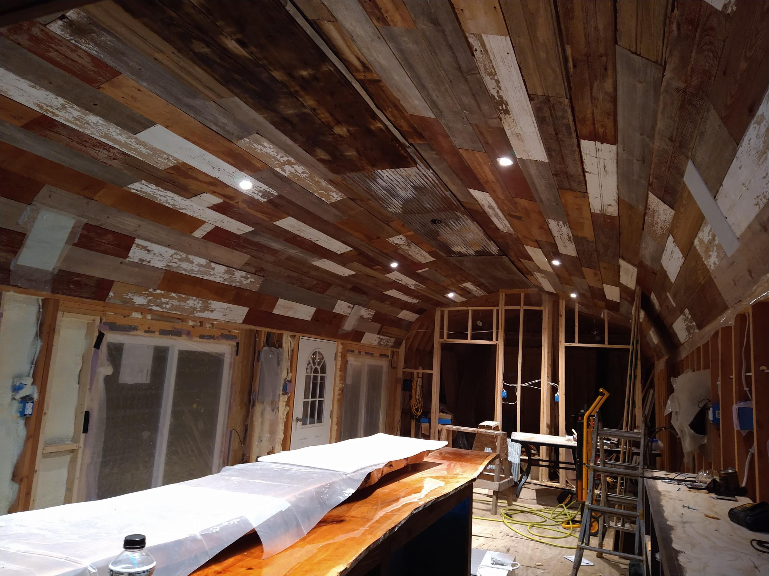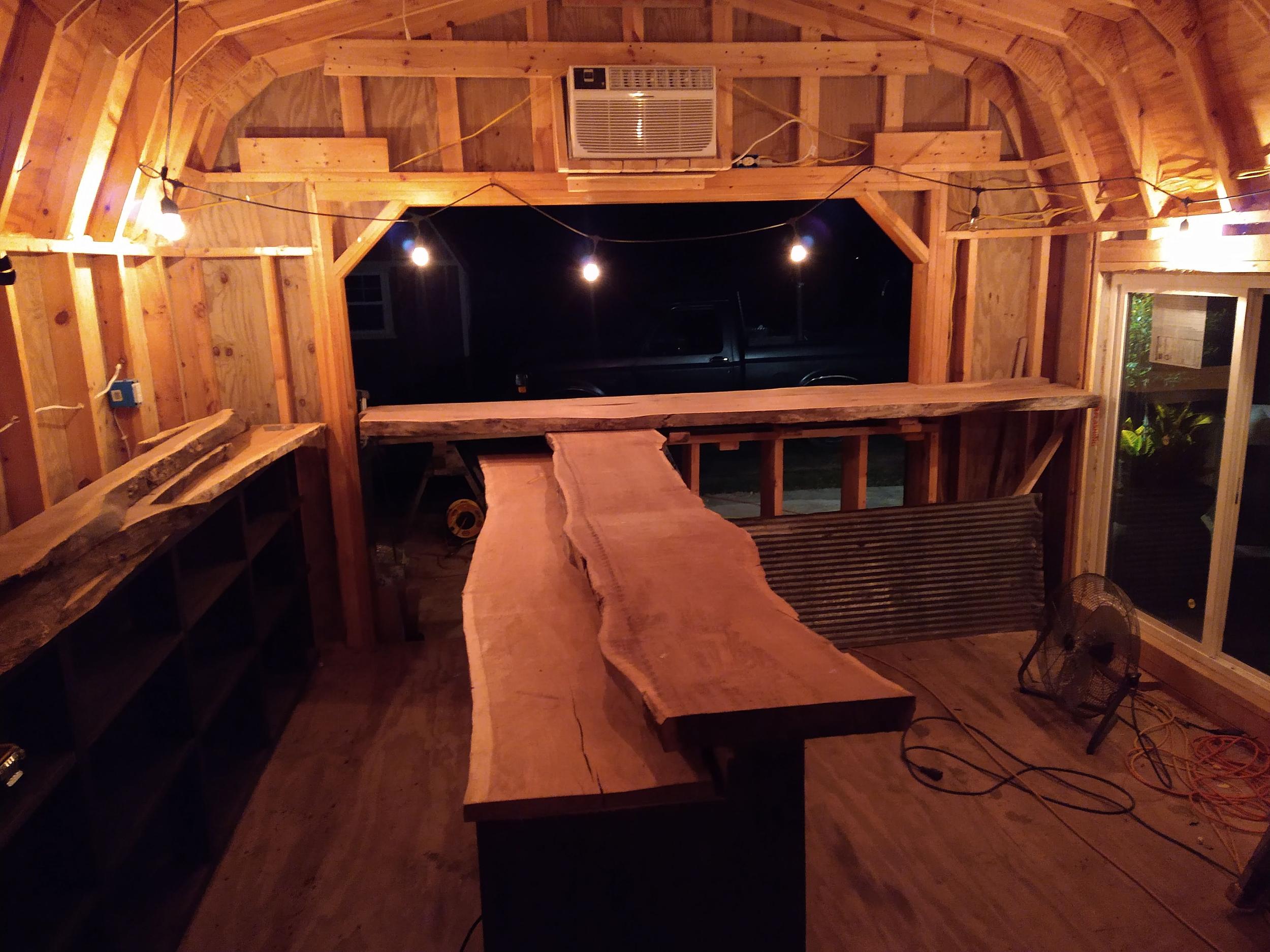 This backyard pool house project was designed to create a functional and inviting entertainment space. The build included a custom bar area with handcrafted live-edge epoxy bar tops, reclaimed wood ceiling accents, custom shelving, and integrated LED lighting. The space was finished to bring together rustic materials with modern lighting to create a unique outdoor gathering area.